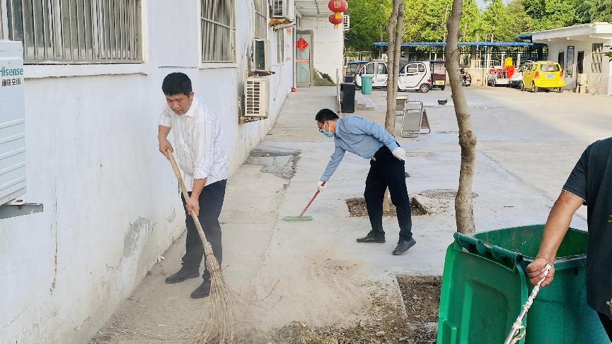 活动中,党员干部及全体职工充分发扬不怕脏、不怕累的精神,根据任务分工,迅速投入工作。大家纷纷拿起扫把、铲子、抹布、拖把、铁锹等清洁工具,对医院主楼走廊、门窗、楼梯、转角,室内地板、办公桌椅以及院内烟头、杂物、杂草等垃圾进行全面清理整治。
